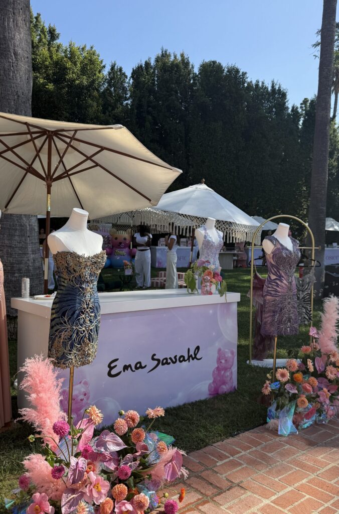 Set inside a private Beverly Hills estate, the space was designed to feel like a seamless flow of moments rather than a traditional event layout. Poolside lounges, shaded activations, and open-air brand stations created a natural rhythm of browsing, lounging, and socializing, exactly the kind of environment made for the content girlies. The aesthetic leaned bright, polished, and distinctly pre-Coachella: sun-drenched, stylish, and built for both IRL interaction and digital storytelling.