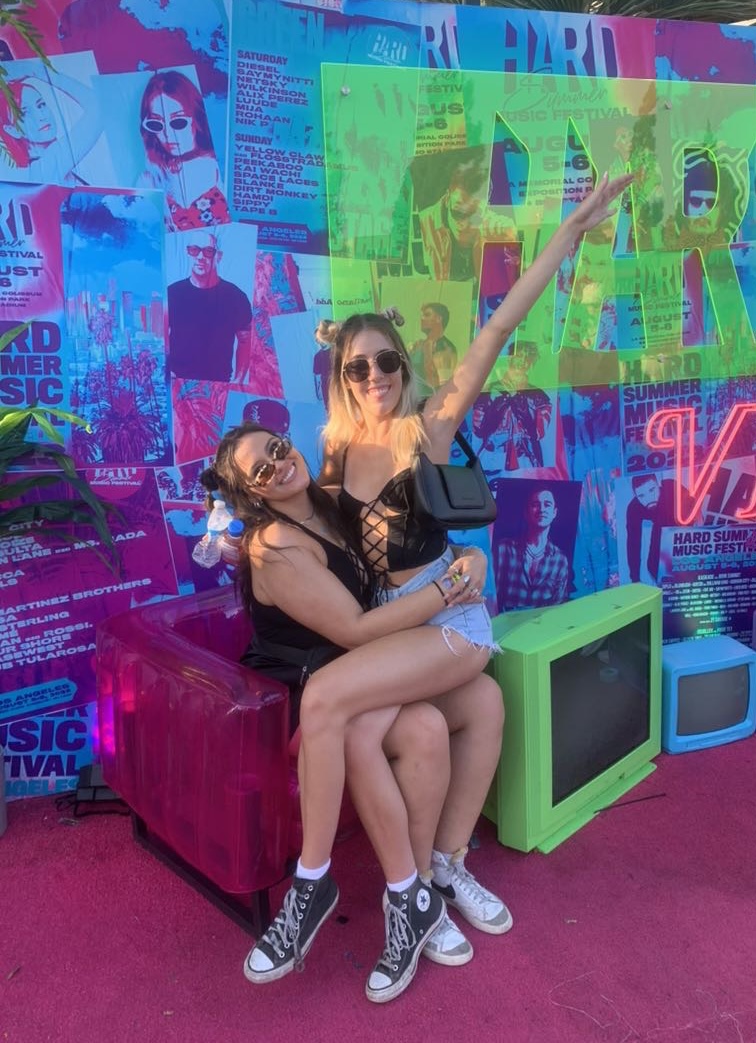 Obvi…the only reason to go to HARD Summer is to listen and dance to the incredible lineup of music, but there are so many food & beverage brands that have sponsored the event to experience too. This year, the festival food vendors included 10/10 Smash Burger, Cinnabon, Love Bird Fried Chicken, Something Good LA, and Wendys. But here’s what we really loved. The sampling station from Electrolit was so cool and was an absolute lifesaver. They helped us stay hydrated while we worked up a sweat dancing and were the perfect pick-me-up to get us through the rest of the night. Electrolit’s mini “shots of hydration” – were kept ice cold at their station that even featured a 360-degree camera for selfies with our crew. Plus, there were so many delicious flavors to try (including zero-sugar options), but our faves were the Strawberry Kiwi and Berry Bliss. Not to mention the high-energy staff that made the visit so welcoming and fun that we forgot all about the hot sun. Relaxing in the Electrolit zone was the perfect way to not only recharge our bodies but our phones too. Yup, this is one station worth checking out. It truly made our HARD Summer experience ElectroLIT!