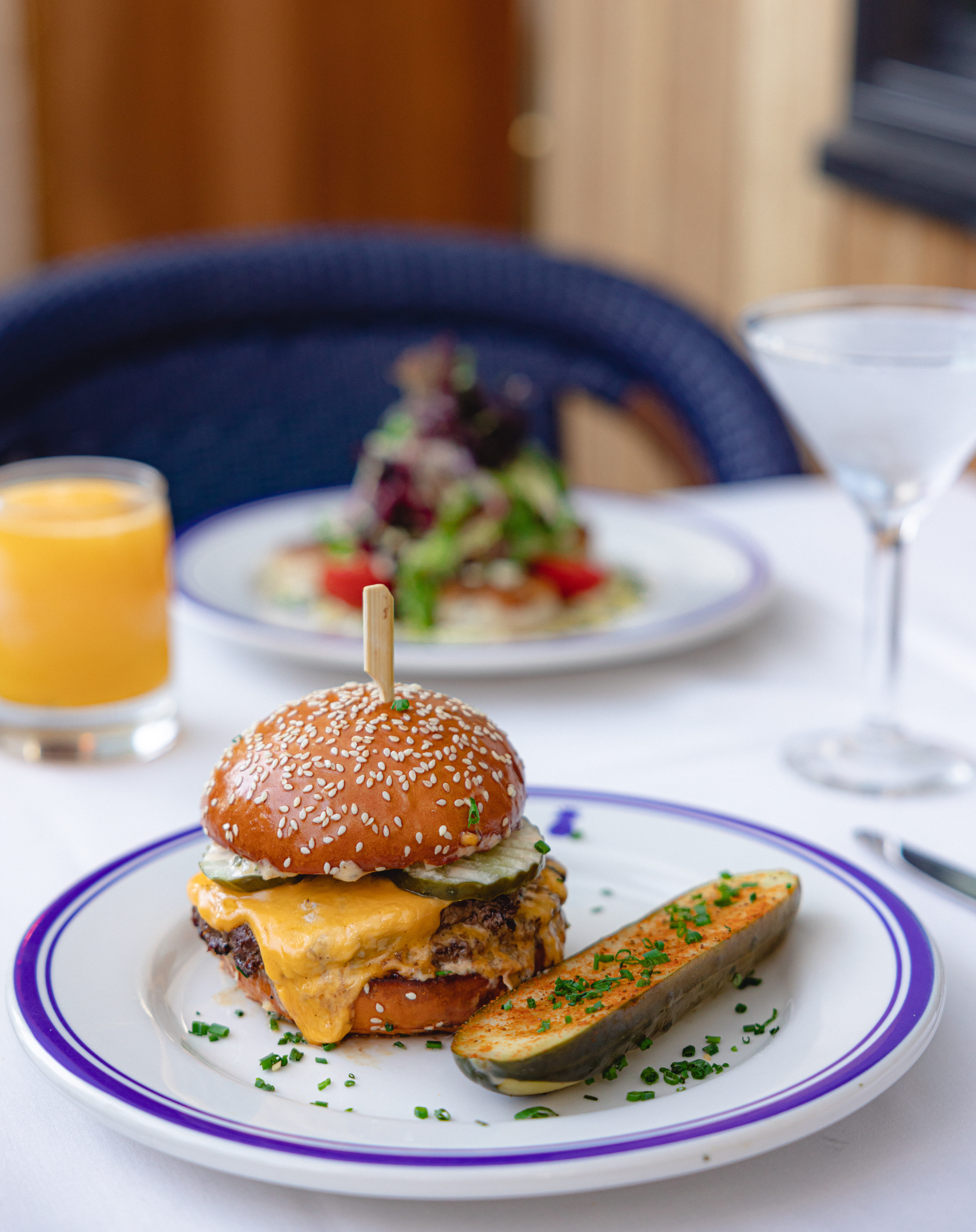 Walking into Hudson House, located at 9255 W. Sunset Blvd in Weho, you’ll feel as if you were on the coast…with the coast being Sunset Blvd. Looking away from the restaurant there are views of Soho House and the entertaining Sunset strip. If you eat out on the patio, you’ll get the vibe of intimacy and exclusivity behind a lush green wall and moody table side lights. Inside is a whole other vibe. It has a light and airy coastal feel with blue and wood interiors. This is a spot you’ll want to take a date for sure. The ambiance is inviting and calm enough to hold a deep convo. Yup, you’ll be able to hear each other which is a total bonus. I can also see a family brunch take place here. The full-service dining room and bar concept is also decorated with posters of the New Yorker and a huge model of a ship enclosed in glass cements the fact that this is an east coast hideaway and can easily be transformed into your personal social club hub (if you can get over the $20 for Valet).