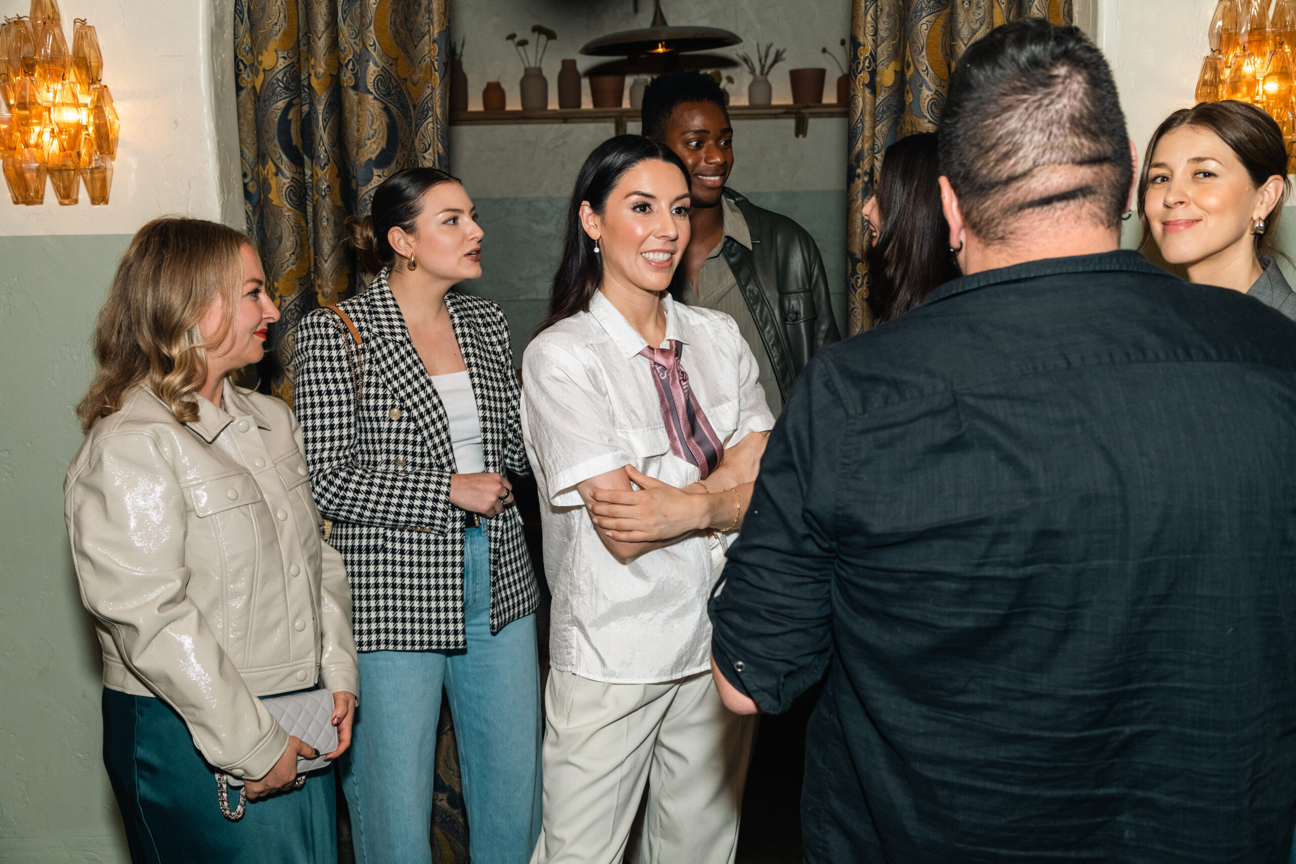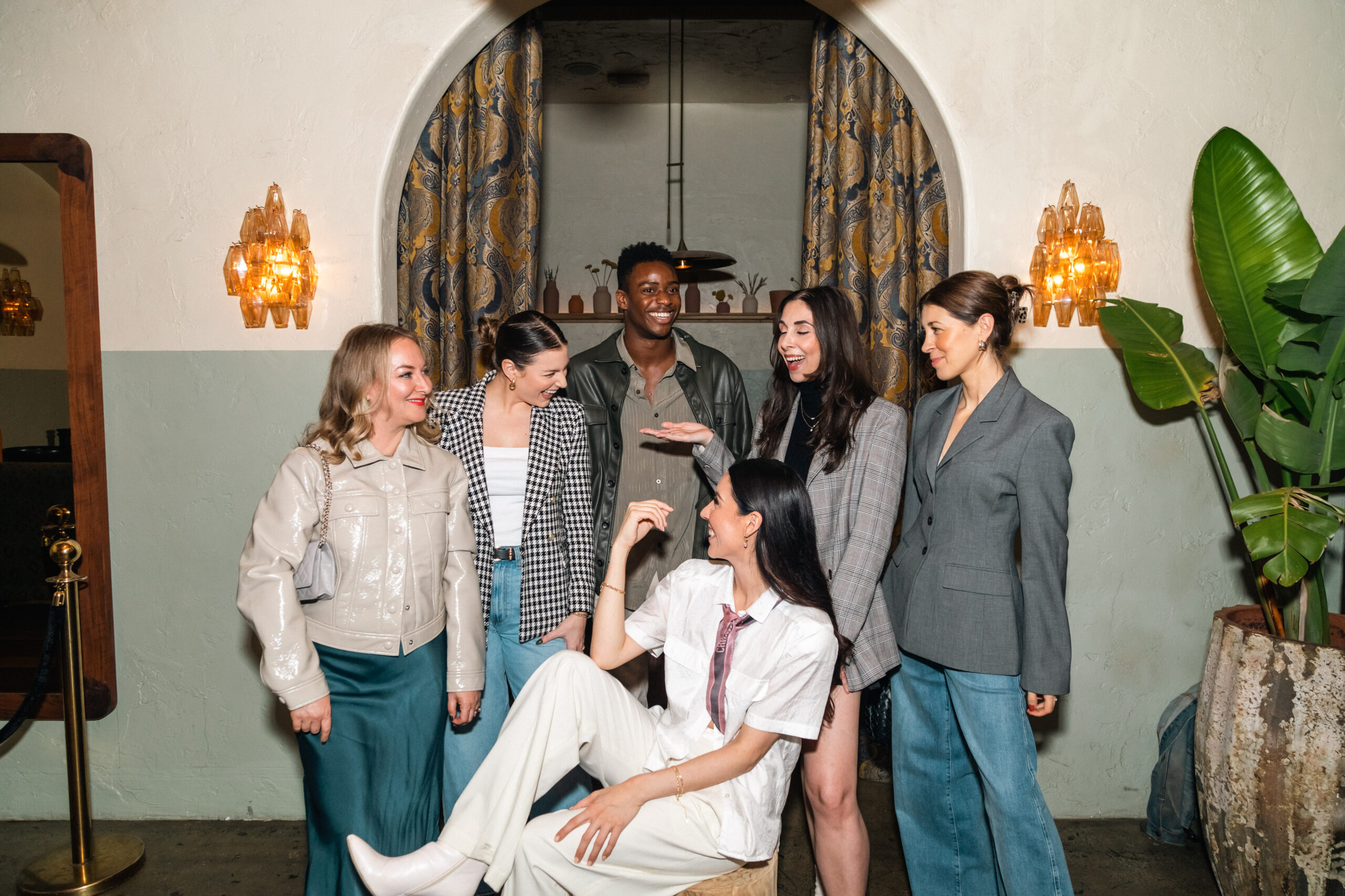 The table has been set on a warm Tuesday evening in Santa Monica’s new chic hotspot, Mon Ami. A Mediterranean inspired hidden gem that has previously set the scene for another brand dinner – 818 Tequila. Its host? None other than our favorite ‘it girl’ of all time – Kendall Jenner. The mood is intimate, celebratory and energizing with The LA Girl holiday blankets stacked across the patterned sofas and lounge space as, one by one, LA’s leading editors, hosts, writers and industry experts walk into the dimly lit restaurant. They are met with greetings from our Editor-in-Chief, Erika De La Cruz, and are led into a private room where photos and social content are being taken. The group laughs together for our feature cover photo, deciding on whether to smile, or smize, and enjoy the light touch ups of a powder brush from our glam team.