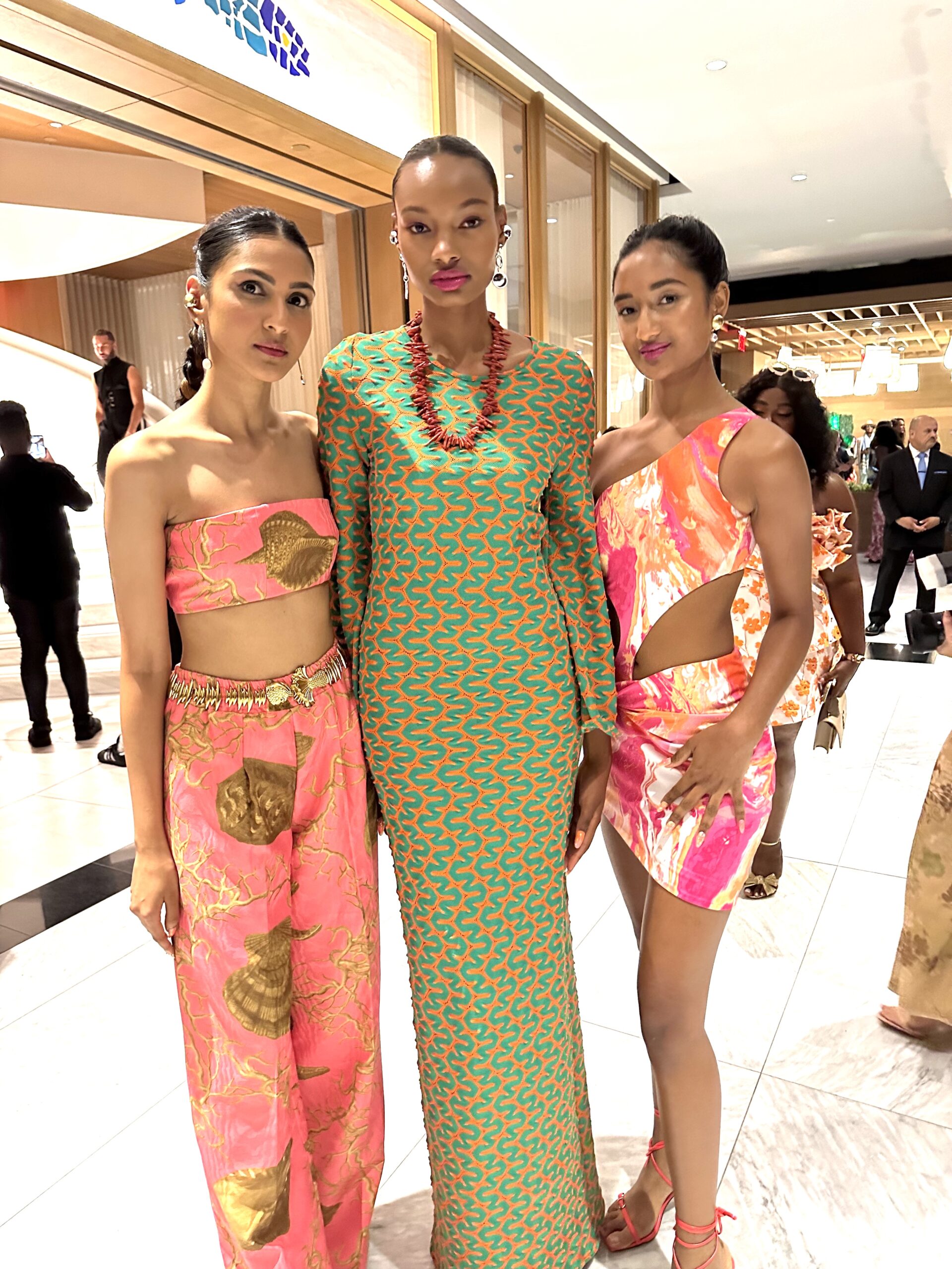 The Mother/Daughter design duo from Dur Doux pulled out all the stops for their collection labeled Sous Marine ss24. The inclusive, luxury lifestyle Womenswear brand from creative director and founder Najla Burt brought inspiration from coastal themes into their pieces. Colors like aquamarines, popping pinks and fresh whites took over the runway at BondSt at Hudson Yards. Silhouettes included two piece sets, cutouts on dresses, and lots of printed mesh fabrics. We also loved seeing swimwear incorporated into some of the looks which had us rethinking our outfits for any upcoming vacation. The show stopper for us was a spaghetti strap full volumed dress in bright pink and orange. The runway was hosted by the debut of The Green Show, a groundbreaking annual event dedicated to promoting sustainable fashion and exemplified the transformative power of fashion as a force for positive change. You can find more of Dur Doux’s looks on Shopbop.
