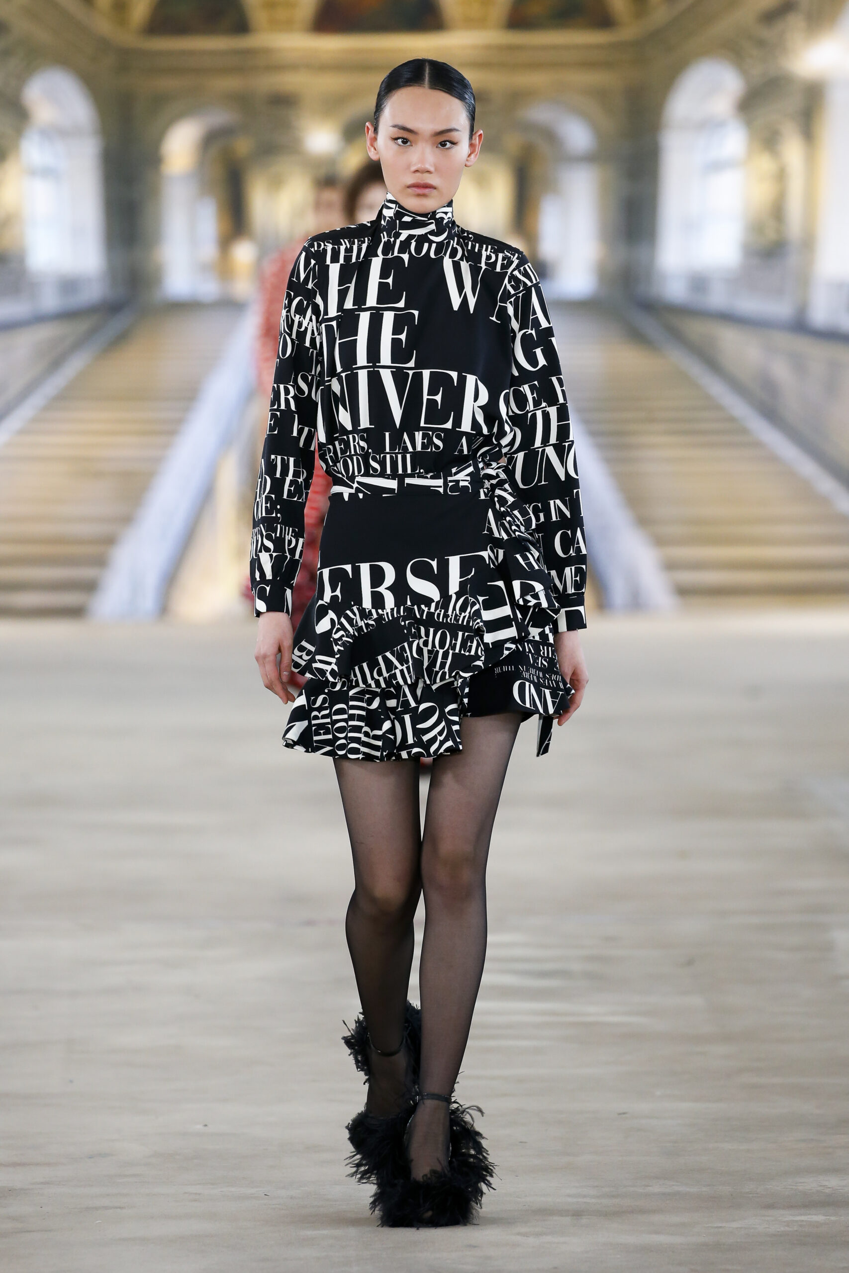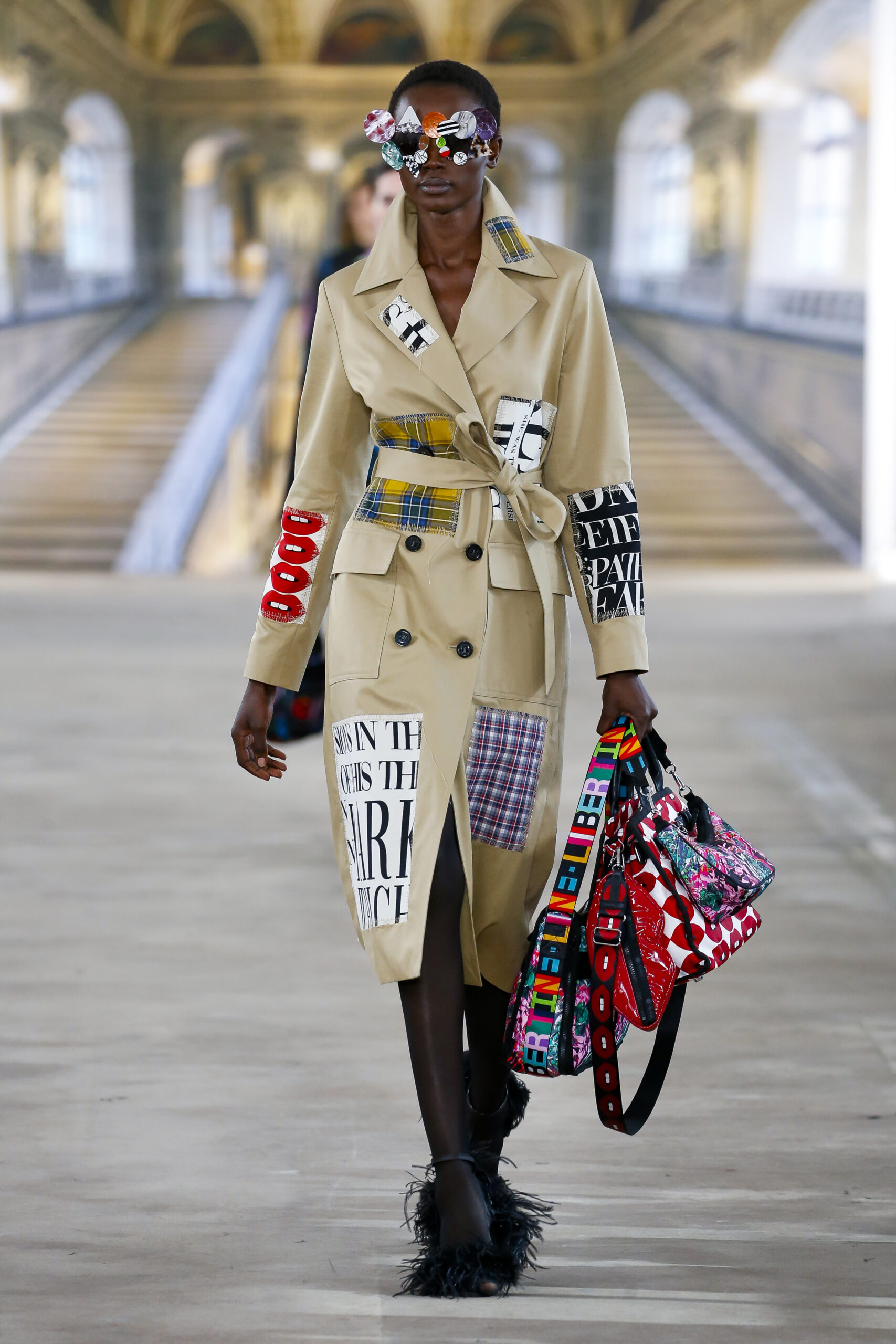 Luxe ready-to-wear & LA based brand, Libertine kicked off New York Fashion Week with a show stopping runway of womenswear and menswear collections at the Starrett-Lehigh building in New York City. Libertine Creative Director, Johnson Hartig, offered an unparalleled approach to luxury with his whimsical and eclectic designs. For the new collection, he drew inspiration from creative individuals including Jean Cocteau, Mary Quant, Peggy Guggenheim, and Lord Byron. It was a visual feast, embracing boldness and joy with vibrant patterns and colors that captivate the eye. From power-clashing flannel to oversized statement blazers, each piece in the showcase exudes personality. Models donned playful accessories such as furry shoes and funky sunglasses, emphasizing the theme with flair. Since its launch in 2001 by Johnson Hartig, Libertine has maintained its commitment to hand-printed and bedazzled pieces while incorporating vintage-inspired elements like the iconic lip print. But got to say we loved the newspaper print pieces that reminded us of our own Vision Boards.