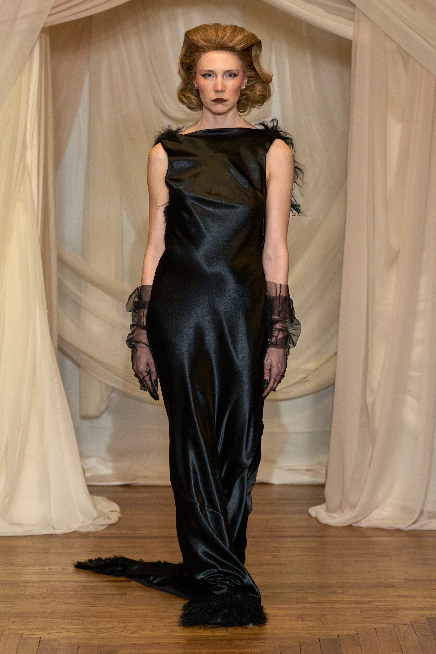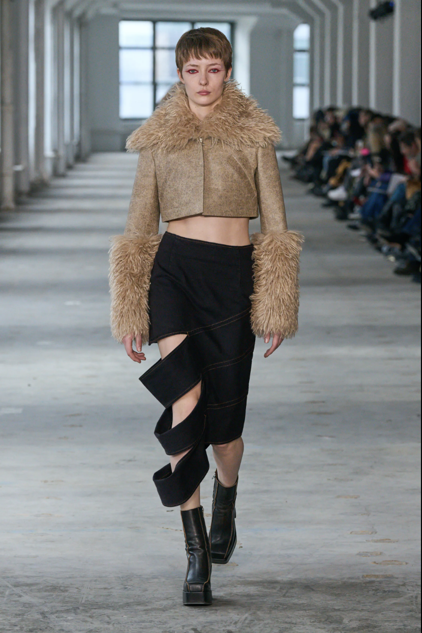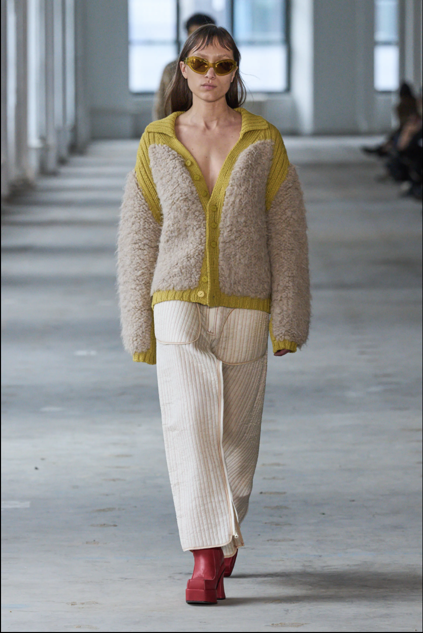 Eckhaus Latta’s collection at was the ultimate ode to Big Apple chic. Their signature blend of downtown edge and avant-garde flair was on full display and had a mesmerizing array of textures and fabrics. From luxe shearling coats layered over featherweight sheer jersey tops to shaggy ribbed knits, each piece exuded effortless cool. It was a masterclass in modern, urban street style that captured the essence of New York City’s fashion scene with undeniable flair. We hope to see this style more on the streets of LA.