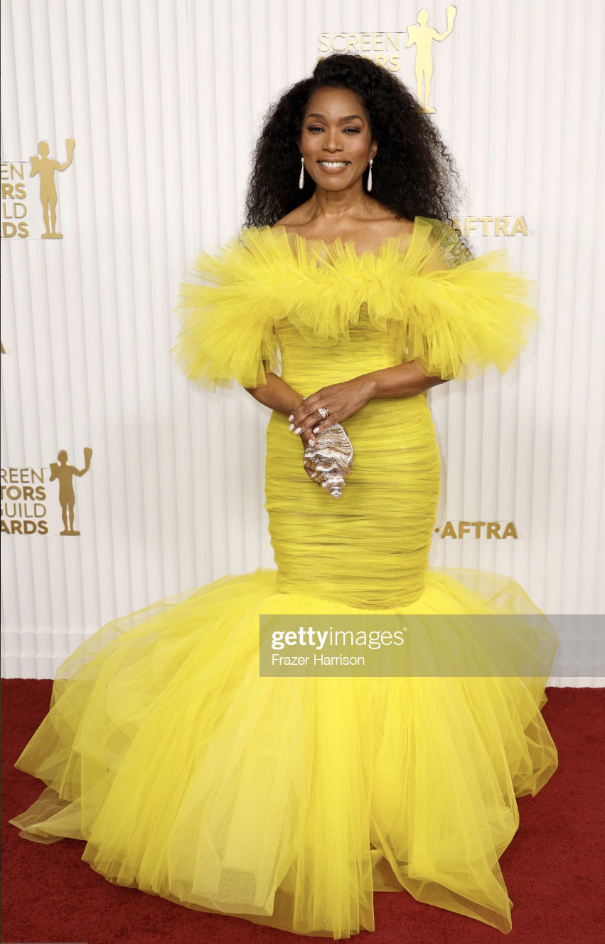 - Angela Bassett wearing Gianbattista Vali Couture, courtesy of Getty Images