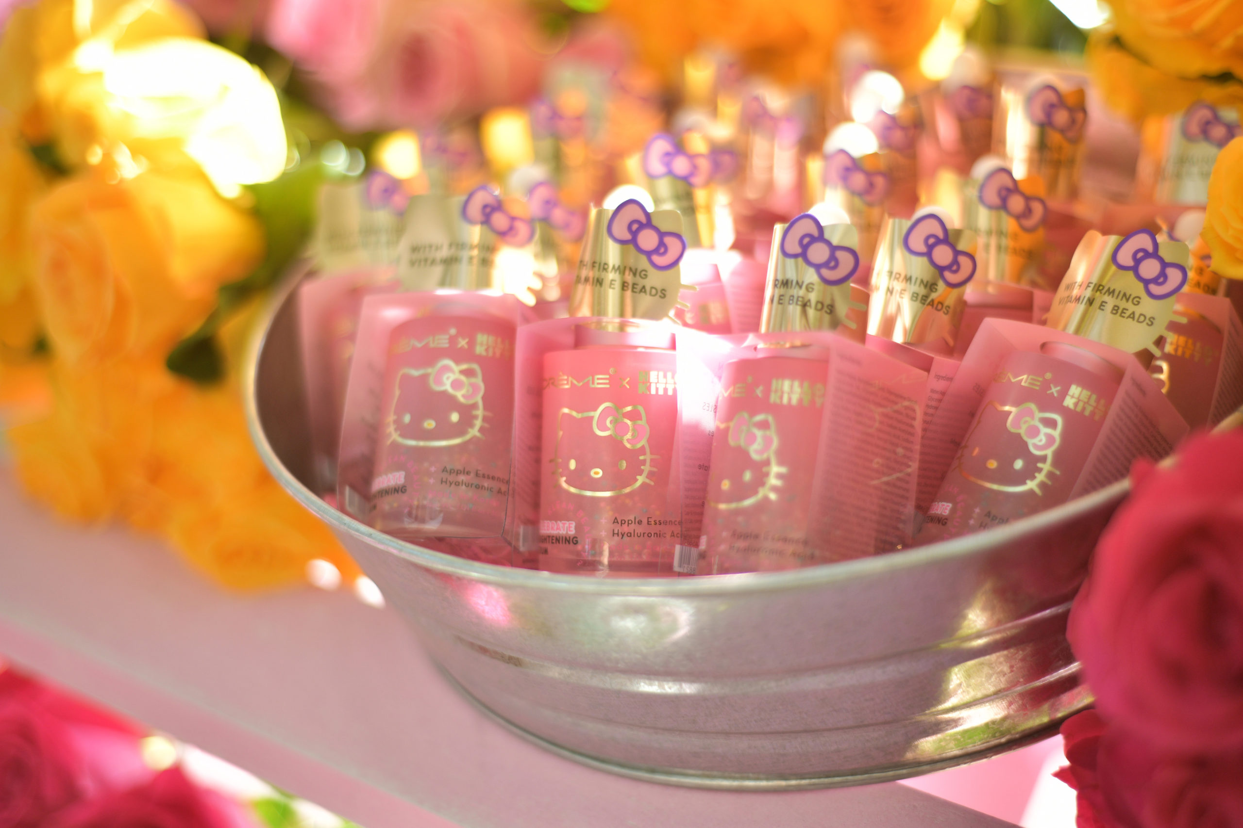 Everybody knows that the first step to a gorgeous face of makeup or simply staying “face-healthy” is high quality skin care products. The Crème Shop knows all about people’s love for their skin, thus they created a brand new collaborated line, The Crème Shop x Hello Kitty® Klean Beauty™ Collection, to ensure that buyers are receiving the highest quality ingredients. This event was filled with pink products galore, Hello Kitty® themed everything, and beautiful plants and florals surrounding every station in the building. The cocktail menu was filled with on theme drinks like the Kitty Tonic, Signature Margarita, and Kawaii Rosé (Cheers!). No matter where you were in the venue, there was an activity to engage in, including permanent bracelets by Dream Catcher Designs and Co, customizable airbrushed bags from Active Airbush Ent., and of course, Hello Kitty® themed bouquets that guests took home from the lovely, Flower Academia. No one stayed hungry because there were delicious bite-sized appetizers and desserts being served every few feet as well.