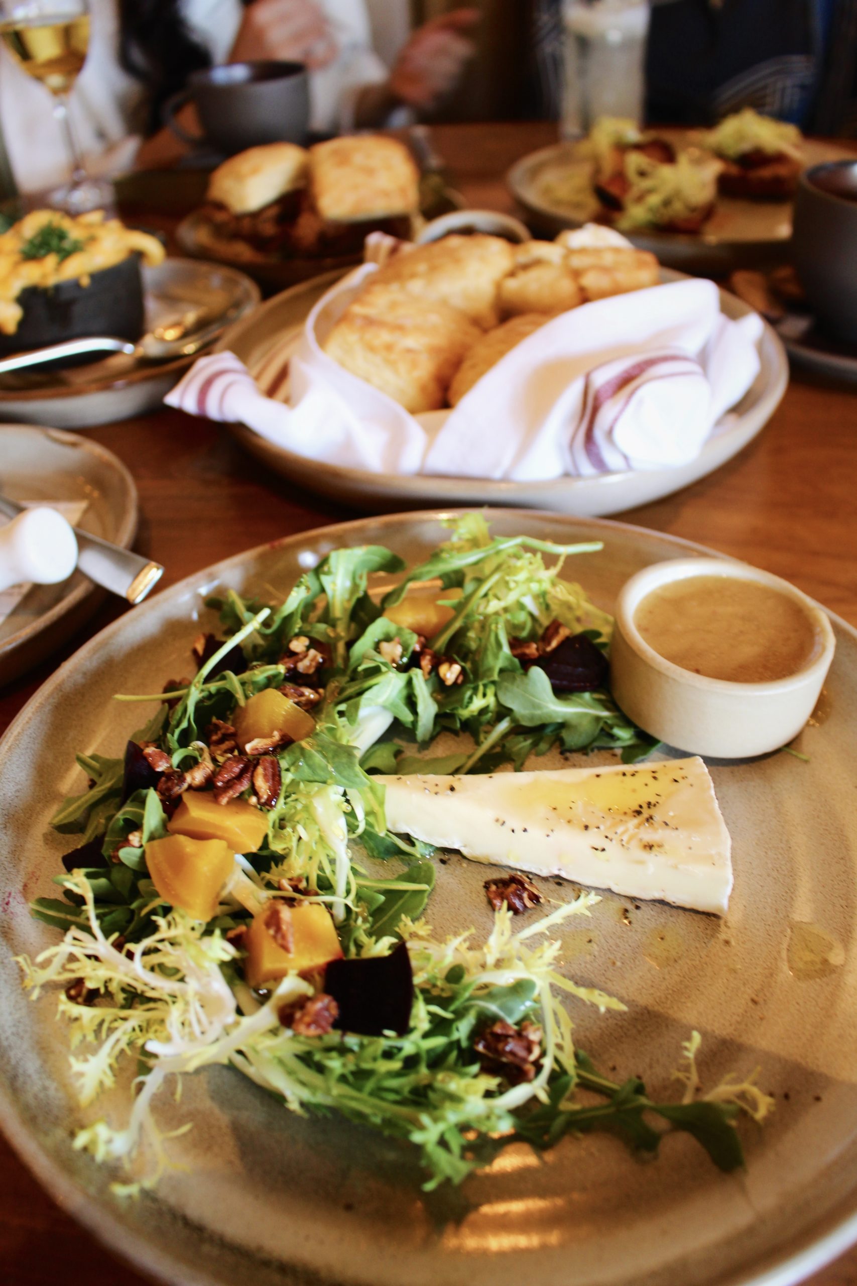 Yardbird specializes in elevated American classic comfort food, with a twist!  From Chicken & Waffles with hot honey sauce and bourbon maple syrup, to a crispy crust Mac n’ Cheese, Yardbird’s menu is full of unapologetically indulgent dishes.  We were also impressed by the selection of options that were vegetarian and gluten-free!  One of our favorites was the Humbolt Fog Beet & Arugula Salad, freshly drizzled with spiced farmers market honey. We also tried the Fried Green Tomato BLT & Southern Street Corn (…. definitely don’t skip out on their signature buttermilk biscuits!) All the dishes felt like “home.”